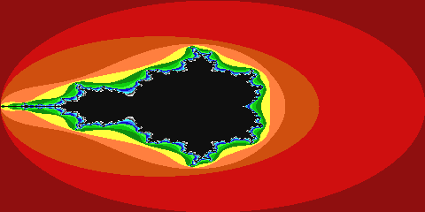 Apfelmännchen (Mandelbrotmenge) mit TS-1 berechnet, 480 x 240 Pixel / 16 Farben
