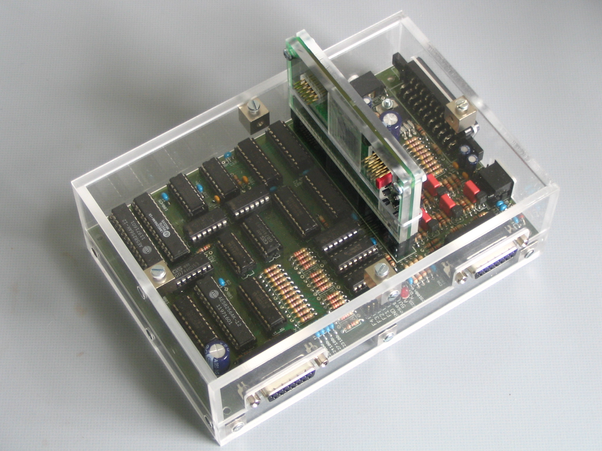 Mit den fertigen Leiterplatten ist der Aufbau der Hardware sehr einfach. Die Bestückungspläne und Stücklisten befinden sich in der Archivdatei. Es müssen auf der Hauptplatine nur bedrahtete Bauteile verlötet werden. Die Einsteckplatine kann auf Wunsch gegen Aufpreis hand-SMD bestückt geliefert werden. Auf dem Prozessor befindet sich dann bereits das lauffähige Testprogramm (für eine Taktfrequenz von 5MHz). So kann leicht geprüft werden, ob die Hauptplatine nach der Bestückung funktioniert.